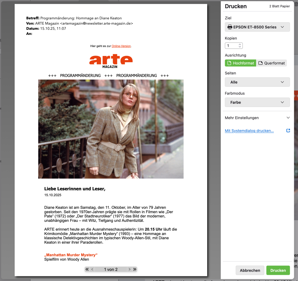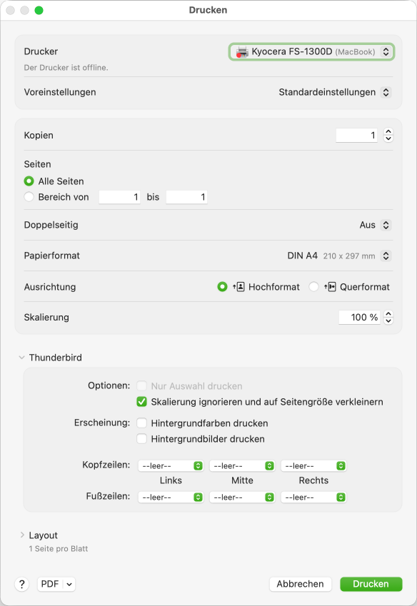 - Das ist der Druckdialog von macOS, den ich lieber nutzen möchte